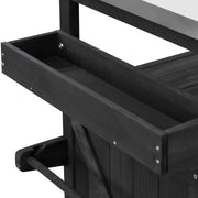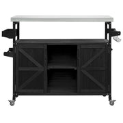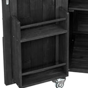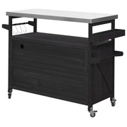 | Summary | This outdoor kitchen cart is ideal for hosting backyard barbecues or gatherings with friends and family on the patio. Constructed from solid fir wood and a 201 thick stainless steel topit is perfect for food preparationserving traysor keeping beverages cold. The frame is made of solid fir wood with a distressed finishfeaturing slatted door fronts with a natural finish for added farmhouse charm. This bar cart sits on 4 lockable casters for easy mobility and stability. The thoughtfully designed three shelves on either side can be adjusted or removed for maximum adaptability. Additionallythis cart includes internal storage racks and a spacious spice rack to accommodate bottles and glasses. |
