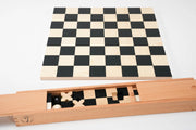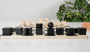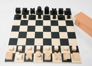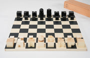 This game of chess with clean lines is typical of timeless Bauhaus style. Josef Hartwig's chessmen, designed in 1923, have characteristically reduced forms which, in contrast to commonly used figures, are symbols based purely on the function and form of the maneuver of each piece. Cubes, cylinders and balls lead you move by move to checkmate. The perfect chessboard for the Bauhaus chess pieces features a unique border-less design and compliments the pieces really well.
