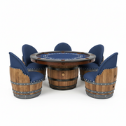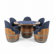 Dark Navy Blue Wine Barrel Poker Set with Removable Dining Top - Game Table & Barrel Chair - Wine Barrel Table for Dining and Poker