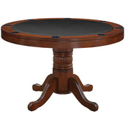 Perfect for everything from Blackjack to Texas Hold 'Em, this 48" round quality made poker table boasts beautiful solid wood construction with a padded vinyl playing surface. This 3-in-1 table has a flat dining surface, playing surface and storage underneath for all your gaming needs!